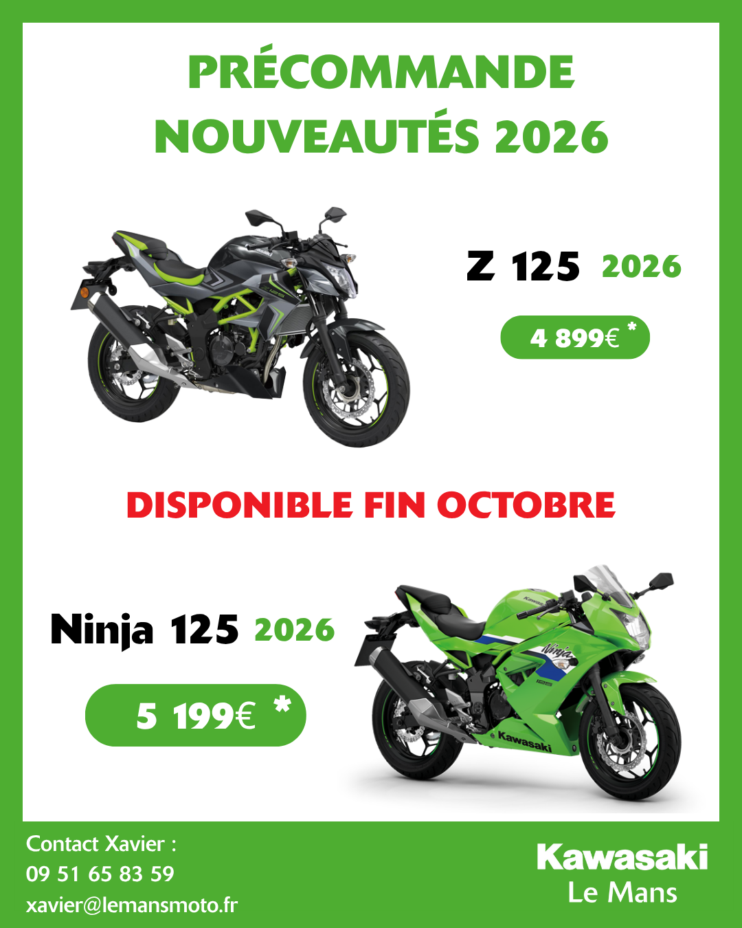 pour 2026 : la Z 125 et la Ninja 125.